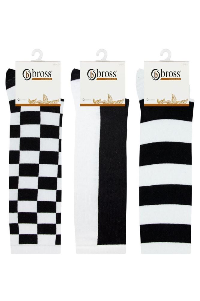 ASORTİ KADIN SİYAH BEYAZ MODELLİ 3LÜ DİZALTI ÇORABI